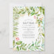 Trendy greenery baptism invite with gold geometric frame and sage green watercolor wash reverse designed to be quickly and easily customised to your event specifics.