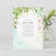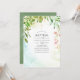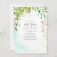 Trendy greenery baptism invite with gold geometric frame and sage green watercolor wash reverse designed to be quickly and easily customised to your event specifics.