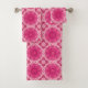 Geometric Daisy Pattern in Coral and Pastel Pink Bath Towel Set