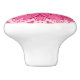 Ceramic knob in a geometric daisy pattern in coral pink and pastel pink, accented with deep coral