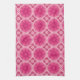 Geometric Daisy Pattern in Coral and Pastel Pink Tea Towel