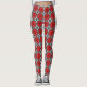 Leggings in a geometric daisy pattern in deep red / crimson on a black and white patterned background