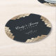 Geometric Dark Navy Gold Wedding Round Paper Coaster