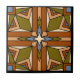 This tile features a beautiful geometric design in olive green, burnt sienna, sandy beige, cream and deep sky blue, outlined in black. These would look amazing as a backsplash or individually hung as wall art, or could even be used as a pretty spoon rest in the kitchen.