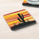 Abstract geometric desert sunset illustration with yellow, orange and red diagonal stripes and cactus decoration. Add your name/monogram or delete the text.