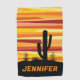 Abstract geometric desert sunset illustration with yellow, orange and red diagonal stripes and cactus decoration. Add your name/monogram or delete the text.