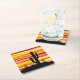 Abstract geometric desert sunset illustration with yellow, orange and red diagonal stripes and cactus decoration. Add your name/monogram or delete the text.