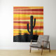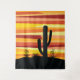 Abstract geometric desert sunset illustration with yellow, orange and red diagonal stripes and cactus decoration. Add your name/monogram or delete the text.