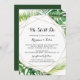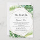 This geometric destination we still do vow renewal invitation is perfect for a tropical vow renewal ceremony and celebration. The design features hand-painted watercolor green palm and banana leaves neatly arranged into beautiful bouquets, adorning a gold geometric frame.