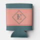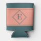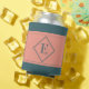 This can cooler design features a centred geometric double diamond shape in teal over a pale salmon background. Personalise the text field with an initial letter or click customise to select a typeface colour, size, and style your prefer.