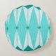 This Geometric Diamonds & Starbursts Round Pillow (large print) has all of the kitschy charm of something that is kitschy and charming. The vintage inspired design features a mod, peacock blue background with light blue, elongated hexagons, layered with turquoise diamonds, and peacock blue starbursts. It’s a kaleidoscope of retro goodness! This 1950’s and 1960’s Palm Spring’s style design looks like it would be equally at home on a mid century modern motel sign or in the house of your favourite classic television family.