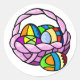 drawing of Easter eggs painted with geometric shapes in bright colours in a basket.
