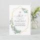 Forest eucalyptus greenery long distance virtual wedding invitation with gold geometric frame customisable to your event specifics.