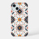 This artwork features a symmetrical pattern of stylised floral motifs, intricately arranged in a geometric layout. The design is dominated by bold shapes and sharp angles, with a colour palette of deep navy, vibrant orange, and rich red set against a clean white background. The repetition of the floral elements and the precise, orderly arrangement create a sense of harmony and balance, while the contrasting colours add vibrancy and energy to the composition. The overall effect is both modern and timeless, combining elements of traditional floral designs with contemporary geometric precision.