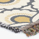 I ordered an art deco sofa pillow in the design shown. I wanted a woven throw in that design as well, but they had quit making anything but fleece throws (which I didn't want). I kept in touch with the designer (she is in England, I'm in USA) and she talked with Zazzle. When they began making woven throws again, I jumped on it and ordered this! When I received it, it was about commemorating someone's 100th birthday - not at all what I ordered. I talked with Zazzle and the designer and the problem was quickly rectified. They didn't even ask that I return the original wrong throw. This throw is beautiful, matches the pillow perfectly, and is just what I wanted. Emms Childs, the designer, was delightful to work with and Zazzle gave great customer service - very professional, prompt and kind to replace it quickly and not require me to return the incorrect one. It is crisp with the colors true to the photo. Excellent.