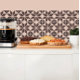 Geometric flower in shades of Tan cream and Chocolat Martini. Designs inspired by the relocation of the city of Barcelona to the coastal town of El Masnou. Summer tiles. Intricate ornamentation. Timeless elegance of the tiles. Ideal for decorating your kitchen, your bathroom or outdoor patios and terraces to give them a Mediterranean, Moroccan or Italian villa touch, depending on the tile model chosen. Check out the entire collection to choose the design that best suits your style.