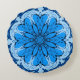 Geometric Flower Pattern in Cerulean & Light Blue Round Cushion