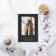 A modern and minimalist graduation announcement design with chic geometric accents. Your vertical photo is framed by a double geometric border in rose gold foil, with your graduate's name, class year, and school beneath. An ethereal calligraphy script accent adds a touch of softness to this simple and minimal design. Add additional details to the colour-coordinated back, along with a second photo.