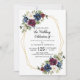 Geometric Frame Burgundy Navy Flowers Wedding Invitation