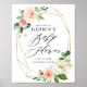 Geometric Gold Frame Pink Peach Watercolor Florals Baby Shower Welcome Sign. Customisable baby shower welcome poster featuring watercolor romantic peach and white flower bouquets with greenery and faux gold foil geometric frames. This floral baby shower sign is perfect for spring and garden events. Other events and matching items are available.