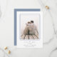 A modern and minimalist save the date design with chic geometric accents. Your vertical photo is framed by a double geometric border in light dusty blue, with your wedding details beneath. An ethereal calligraphy script accent adds a touch of softness to this simple and minimal design. Add additional details to the colour-coordinated back, like your wedding website.