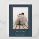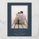 A modern and minimalist save the date design with chic geometric accents. Your vertical photo is framed by a double geometric border in rose gold foil, with your wedding details beneath. An ethereal calligraphy script accent adds a touch of softness to this simple and minimal design. Add additional details to the colour-coordinated back, like your wedding website.