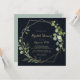 This geometric gold blue green bridal shower invitation is perfect for a simple wedding shower. The design features hand-painted beautiful green leaves in a dark blue background, adorning a gold geometric frame.