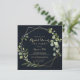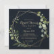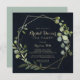 This geometric gold blue green bridal shower tea party invitation is perfect for a rustic wedding shower. The design features hand-painted beautiful green leaves in a dark blue background, adorning a gold geometric frame.