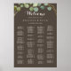 This geometric gold brown alphabetical seating chart is perfect for a rustic wedding. The design features hand-painted beautiful green leaves in a brown background, adorning a gold geometric frame.