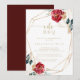 This geometric gold floral "I Do" BBQ engagement party invitation is perfect for a rustic engagement party, rehearsal dinner, couples shower, after party or any wedding event. The design features watercolor white, burgundy and gold flowers and berries with green foliage arranged into elegant bouquets.