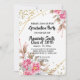 Geometric Gold Frame Pink Floral Graduation Invitation