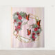Geometric Gold Glitter frame & Burgundy Flowers Tapestry