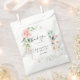 These geometric gold green foliage thank you wedding favour bags are perfect for a modern wedding. The design features hand-painted botanical green and gold foliage with pink, blush, white flowers, adorning an elegant geometric frame. Customise the treat bags with a short gratitude message, including your names and the date.