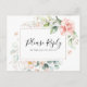 This geometric gold green menu choice rsvp postcard is perfect for a modern wedding. The design features hand-painted botanical green and gold foliage with pink, blush, white flowers, adorning an elegant geometric frame.