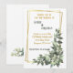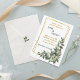 This tropical green leaves invitation is perfect for a simple wedding. The design features hand-painted beautiful green leaves, adorning a gold geometric frame. Personalise the text and message with just a few clicks.
