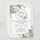 Elegant design featuring a modern gold geometric frame entwined with lush botanical greenery. Perfect for a luxurious garden or greenhouse celebration. A sophisticated choice for the modern couple's special day.