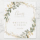 These geometric gold greenery cheers wedding wine labels are perfect for a modern wedding. The design features a beautiful gold geometric frame with elegant green leaves.