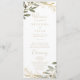 This geometric gold greenery fall wedding program is perfect for a modern wedding. The design features a beautiful gold geometric frame with elegant green leaves.