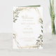 This geometric gold greenery folded wedding program is perfect for a modern wedding. The design features a beautiful gold geometric frame with elegant green leaves. Include a quote or short message, order of service, wedding party and thank you message.
