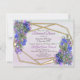 Geometric Gold Glitter Frame design with Lavender - Violet Flower Bouquets on a textured paper for a spring or summer wedding invitation set to personalise for a spring or summer wedding