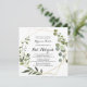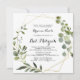 This geometric gold tropical calligraphy bat mitzvah invitation is perfect for a simple bat mitzvah. The design features hand-painted beautiful green leaves, adorning a gold geometric frame.