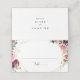 This geometric gold tropical colourful floral wedding place card is perfect for a modern wedding. The design features illustrated white, pink, blush, burgundy and purple elegant flowers arranged into beautiful bouquets with green foliage, adorning a gold geometric frame.