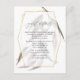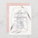 Boho floral wedding guest details cards featuring greenery with gold geometric frame and blush pink watercolor wash reverse customisable to your event specifics.