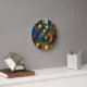 Geometric Harmony: Abstract Cubes in Gold and Teal Round Clock