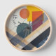The image is a modern abstract artwork that represents a stylized human profile using geometric shapes and contrasting colors. The profile is depicted in a side view, showcasing prominent facial features such as the nose, closed eye, and lips. The composition is defined by a variety of shapes, including rectangles, squares, and a large red circle that overlaps the lower part of the face. The color palette includes beige, dark blue, light purple, and red, creating a visually stimulating and harmonious design.