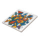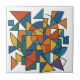 This image features a vibrant abstract composition created from an array of geometric shapes—triangles, rectangles, squares, circles, and trapezoids intersecting and overlapping within a square frame. The artwork uses a bold colour palette including orange, yellow, blue, green, and purple. Black outlines define each shape, creating a stained-glass effect and adding structure amid the chaos. The arrangement evokes movement and balance, with the different shapes and colours interacting harmoniously. The overall effect is dynamic and lively, reminiscent of modern abstract or cubist art, inviting viewers to explore the relationships between shapes and spaces.