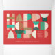 A modern holiday design with geometric shapes in warm tones of green, pink, gold, and red. This playful and abstract arrangement creates a unique and contemporary festive look, celebrating the joy of the holiday season with a touch of minimalism.