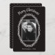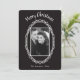 This dramatic black Christmas Card is personalised with your own special photo in a geometric frame interwoven with holiday lights, keeping it classy and elegant for the holidays.
