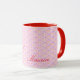 I started out with the honeycomb Jewish star I used in a tablecloth and decided it would be cute on a mug. It is similar to another mug using the green variation of this design. The design warrants a sweeping font. I really like this one!