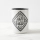 The angular, kufic-style script is formed within a diamond shape, creating a visually captivating pattern that blends traditional artistry with contemporary geometry